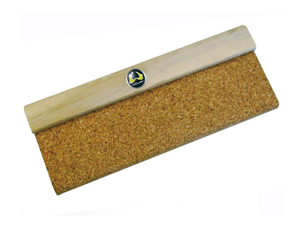 Пробковая доска с округленными углами используется для разглаживания напольных покрытий в труднодоступных местах.